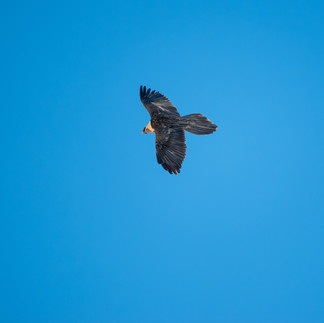Am 16. Januar fahren wir mit der ersten Gondel aus dem nebligen Mittelland auf den sonnigen Gemmipass. Kaum haben wir uns warm eingepackt und die Kameras startklar gemacht, zeigt sich auch schon der Bartgeier. Die Zeit bis zum erneuten Besuch dessen, vertreiben wir mit dem Fotografieren der zutraulichen Alpenbraunellen und Alpendohlen. Gelegentlich gesellt sich noch ein Schneesperling dazu.